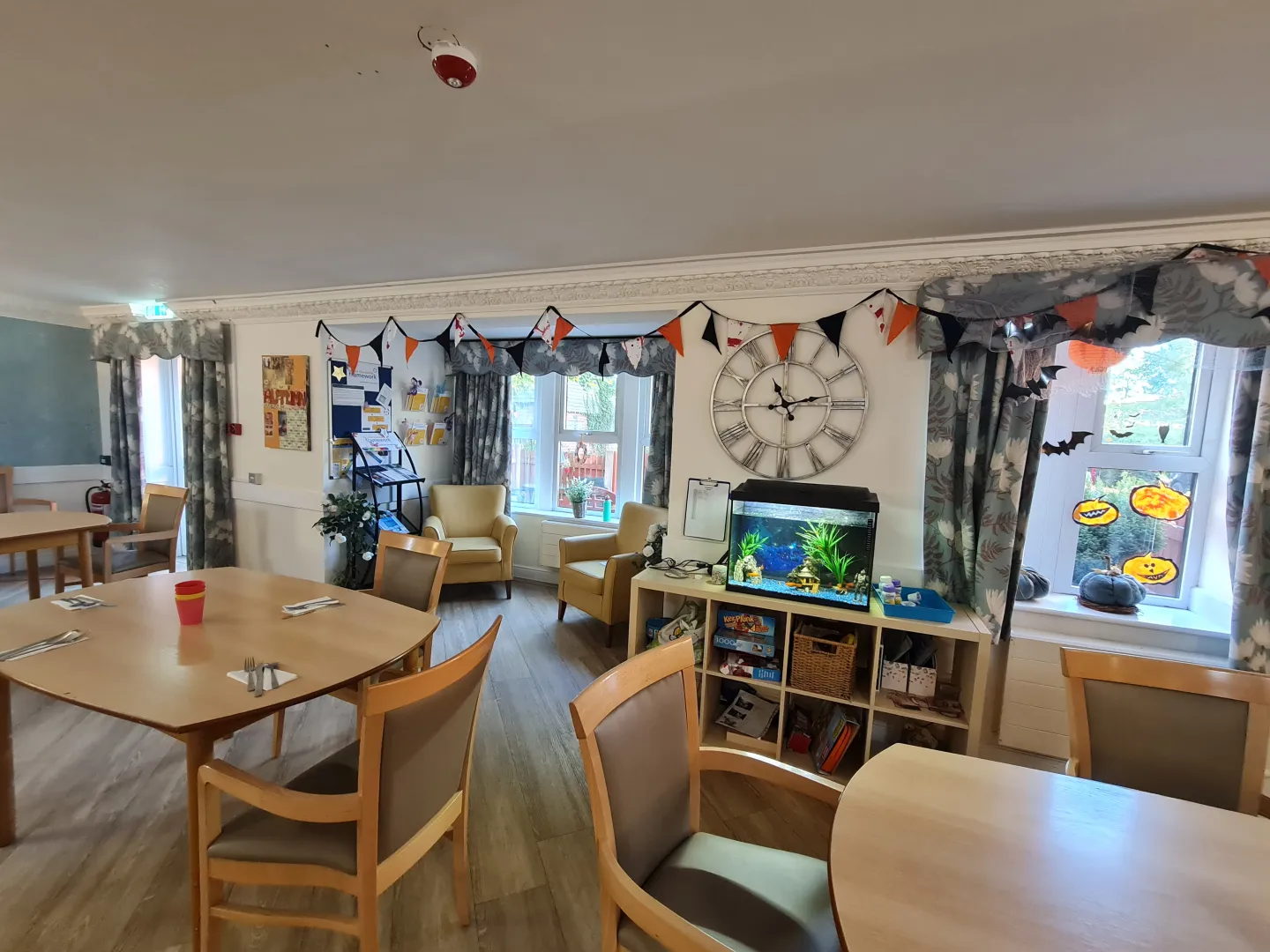 A wide and varied menu is available with all tastes and special dietary requirements catered for. Meals can be taken in the dining room, or if residents prefer, they can be served in the comfort of their own room. There is a choice of cooked breakfast, an appetizing midday meal and supper in the evenings. Home-made cakes, biscuits, fruit and drinks are offered throughout the day.